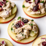 Cranberry Chicken Salad on Apple Slices is a fresh and flavorful no-cook dish perfect for lunch, snacks, or party appetizers. Juicy apple rounds replace bread or crackers, making this dish both gluten-free and refreshingly crisp with every bite.