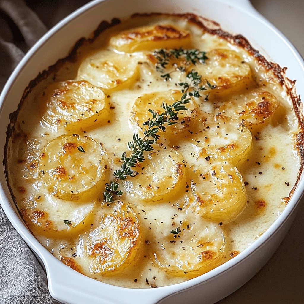 Creamy Au Gratin Potatoes is a classic, comforting side dish featuring thinly sliced potatoes baked in a rich, cheesy, and creamy sauce. With layers of tender potatoes, a velvety cheese sauce, and a golden-brown crust, this dish is perfect for holiday feasts, family dinners, or any special occasion.