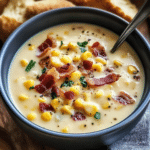This Creamy Corn Chowder with Crispy Bacon is a rich, hearty, and comforting soup packed with sweet corn, tender potatoes, and smoky bacon. Perfect for chilly nights or cozy family dinners, this chowder is creamy, flavorful, and easy to make in just 30 minutes!