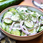Creamy Cucumber Salad is a cool, refreshing dish made with crisp cucumber slices tossed in a tangy, creamy dressing. It’s a classic summer side that’s light, simple, and full of flavor. Whether paired with grilled meats, sandwiches, or enjoyed on its own, this salad delivers a perfect balance of crunch and creaminess with every bite.