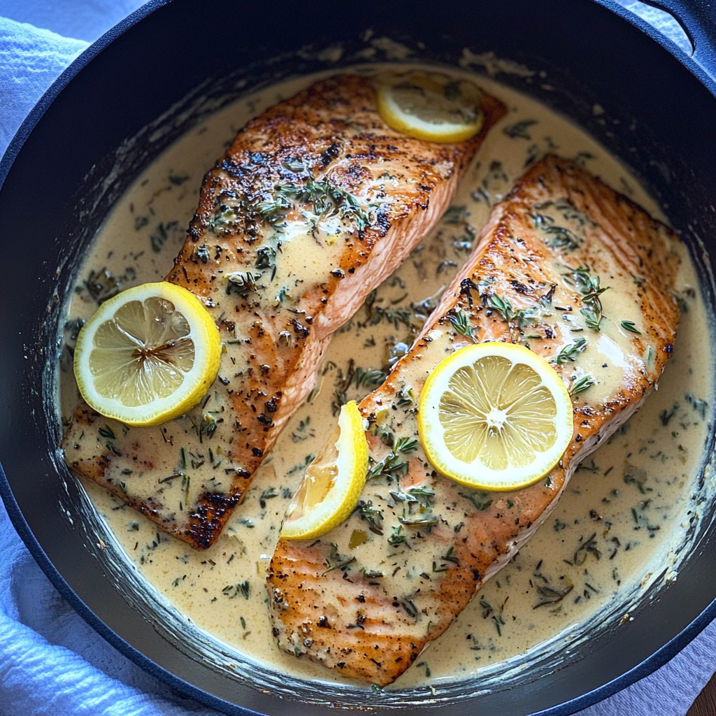 Creamy Lemon & Herb Salmon is a rich, flavorful dish featuring tender salmon fillets in a velvety lemon-herb cream sauce. It’s an elegant yet simple meal perfect for dinner parties or weeknight indulgence.