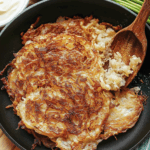 - Flip in sections or invert onto a plate, then slide back into the skillet to cook the other side for another 5–7 minutes until crispy.