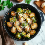 Crispy Parmesan-Crusted Roasted Brussels Sprouts are a delicious and healthy side dish made with tender roasted sprouts, coated in a golden, cheesy crust. Perfectly seasoned and oven-baked, they make a great addition to any meal.