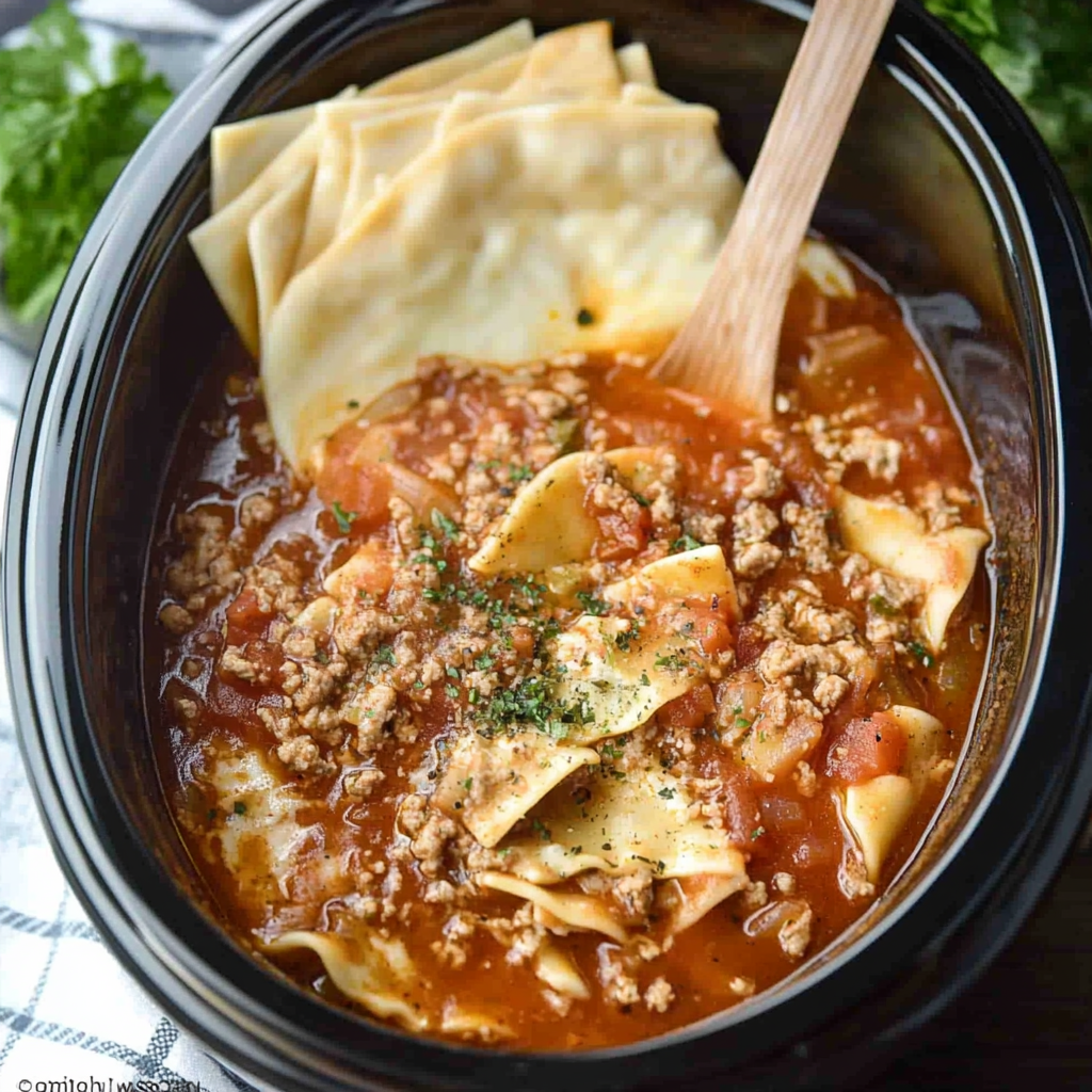 This Lasagna Soup is a slow cooker version of the beloved Italian dish—rich, hearty, and packed with ground beef, tomatoes, lasagna noodles, and a cheesy topping. It’s perfect for chilly nights and requires minimal effort!