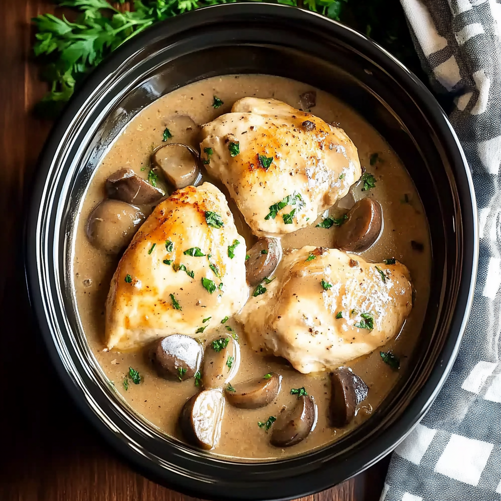 A rich and savory crockpot chicken Marsala recipe featuring tender chicken breasts slow-cooked in a creamy mushroom and Marsala wine sauce — an easy and elegant meal with minimal effort.