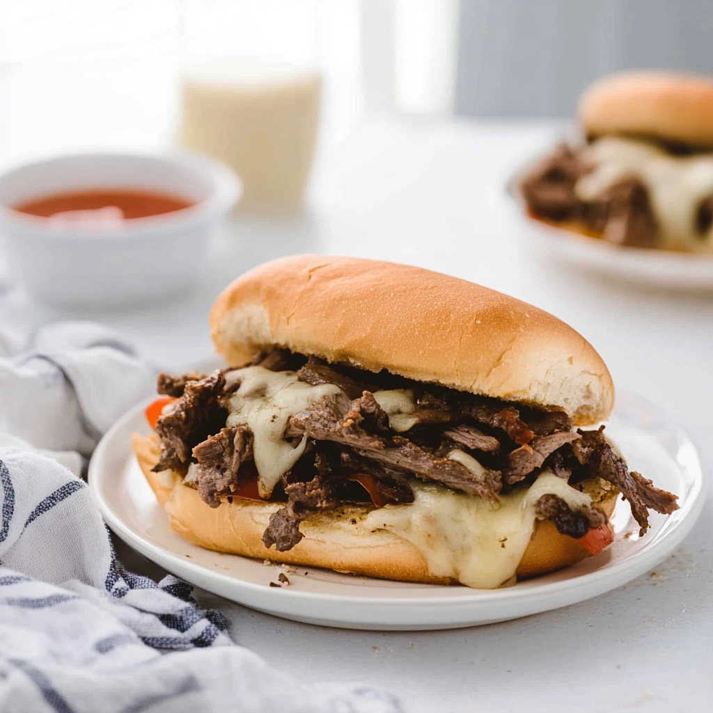 Crockpot Philly Cheesesteak is a slow-cooked version of the classic sandwich, featuring tender beef, bell peppers, onions, and melty provolone cheese served on hoagie rolls for an easy, hands-off meal.