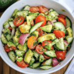 This Cucumber Tomato Avocado Salad is a refreshing and healthy side dish, packed with crisp cucumbers, juicy tomatoes, creamy avocado, and a tangy dressing. Perfect for barbecues, picnics, or as a light meal, it’s quick, easy, and bursting with flavor!
