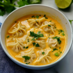 This Curry Dumpling Soup is a rich, comforting dish featuring tender dumplings simmered in a creamy, spiced coconut curry broth. With a perfect balance of bold flavors, warming spices, and fresh herbs, this soup is a satisfying meal that comes together easily in one pot.
