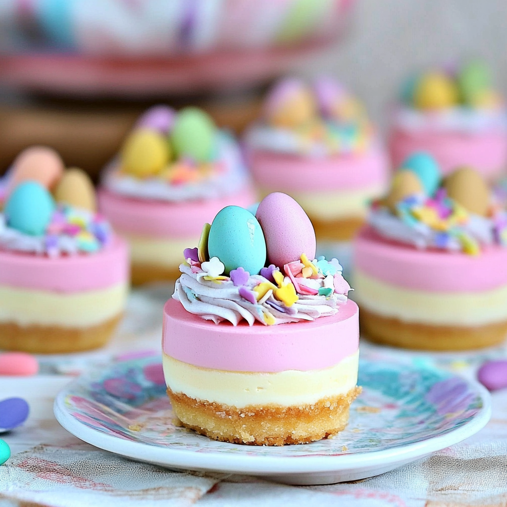 These creamy, no-bake mini cheesecakes sit on a buttery graham cracker crust and are topped with colorful Easter candy. A perfect make-ahead dessert for spring celebrations!