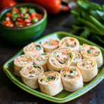1. Presentation: Arrange the pinwheels in a single layer on a serving platter. For added flair, garnish with a sprinkle of fresh cilantro or a light drizzle of lime crema. You can also serve them with salsa, guacamole, or sour cream for dipping.