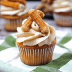- Pipe or spread frosting onto cooled cupcakes. Sprinkle with cinnamon sugar and top with a mini churro if desired.