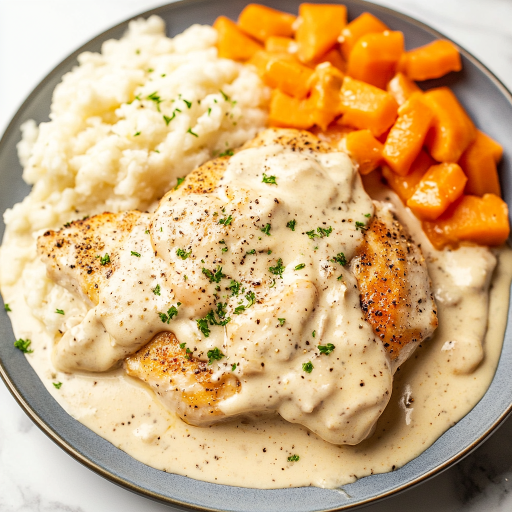 - Garnish and Serve: Remove from the oven and let it rest for a few minutes. Garnish with chopped parsley if desired. Serve the creamy chicken with your favorite side dishes, such as rice, pasta, or steamed vegetables.
