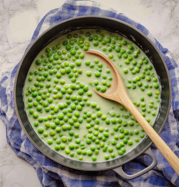 Easy Creamed Peas are a classic side dish made with tender green peas in a creamy, buttery white sauce. Perfect for holidays or weeknight dinners.