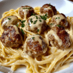 This comforting dish combines juicy garlic butter meatballs with a luscious, creamy Parmesan linguine. It’s easy to make, packed with flavor, and perfect for a hearty family dinner or special occasion.