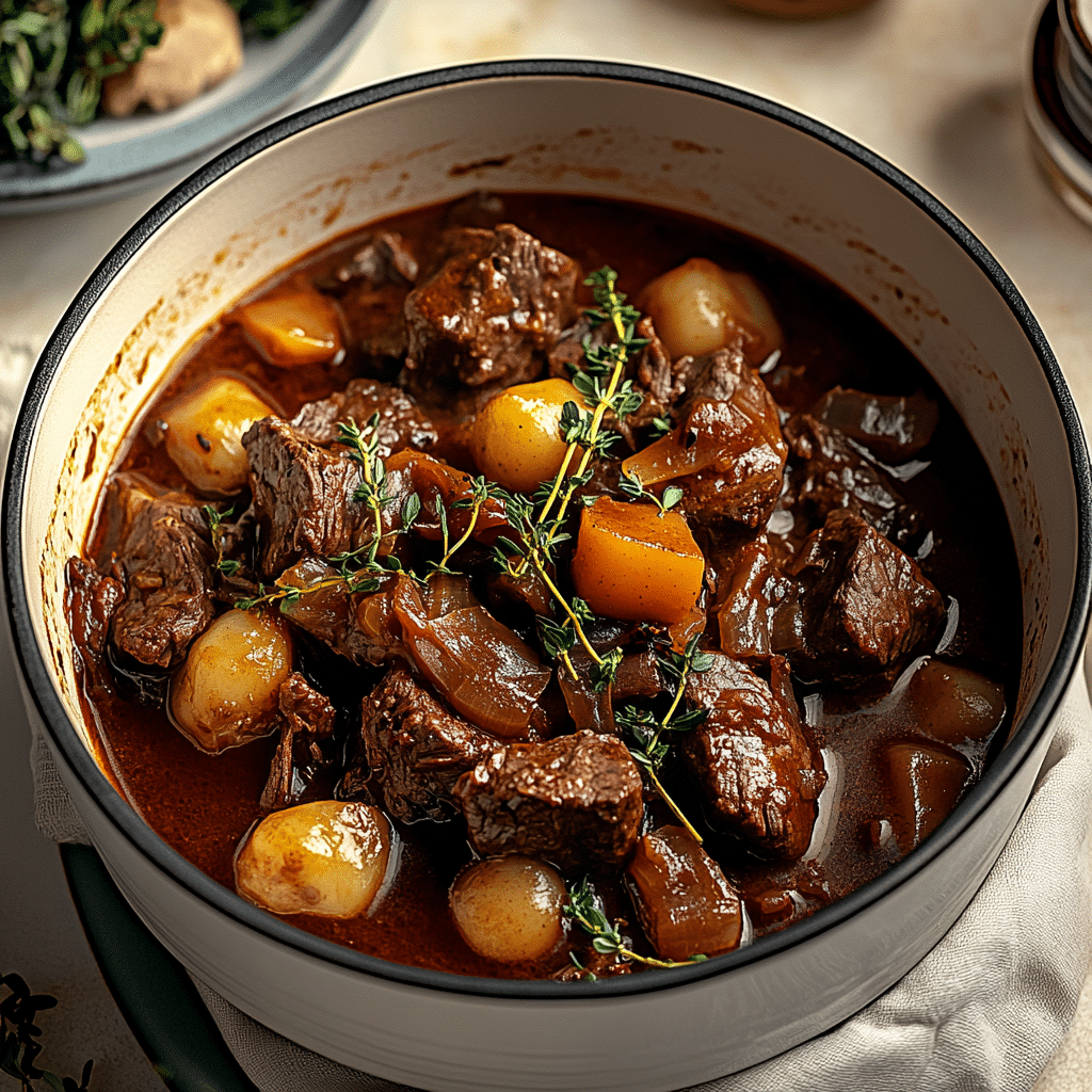 Beef Bourguignon is a rich, hearty, and comforting French stew made with tender beef, red wine, and aromatic vegetables. This easy homemade version brings all the flavors of the classic dish in a simplified, stovetop-friendly recipe that’s perfect for weeknight dinners or special occasions.