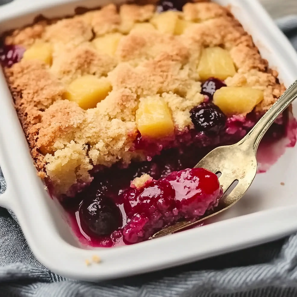 A super simple and delicious dessert made with just a few ingredients—crushed pineapple, cherry pie filling, cake mix, and butter—baked into a golden, bubbly treat.