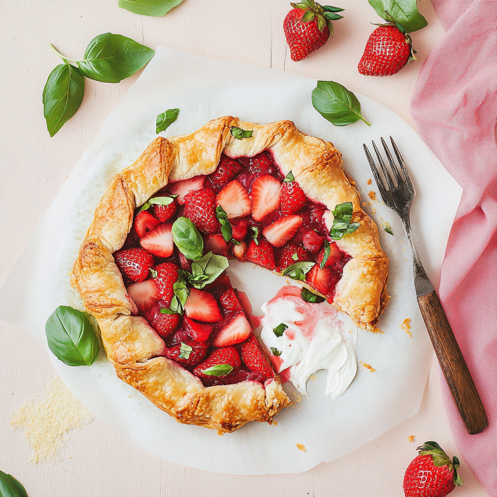 This rustic strawberry basil galette is a delightful fusion of sweet and savory flavors, featuring juicy strawberries and aromatic basil encased in a flaky, buttery crust. Perfect for summer gatherings or a cozy dessert at home, this galette is both impressive and easy to make.