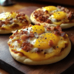 These English Muffin Breakfast Pizzas are a quick and delicious way to start your day. Toasted English muffins serve as mini pizza crusts topped with eggs, cheese, and your favorite breakfast toppings. Perfect for busy mornings or a fun weekend breakfast!