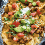 These Foil-Pack Baked Nachos are an easy, fun, and mess-free way to enjoy cheesy nachos loaded with seasoned ground beef, melty cheese, and your favorite toppings — perfect for camping or a quick weeknight snack.