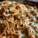 French Onion Beef and Noodles is a savory, comforting dish featuring tender beef, caramelized onions, and egg noodles tossed in a rich, beefy sauce. This one-pot meal brings the classic flavors of French onion soup to a hearty, noodle-based dinner.