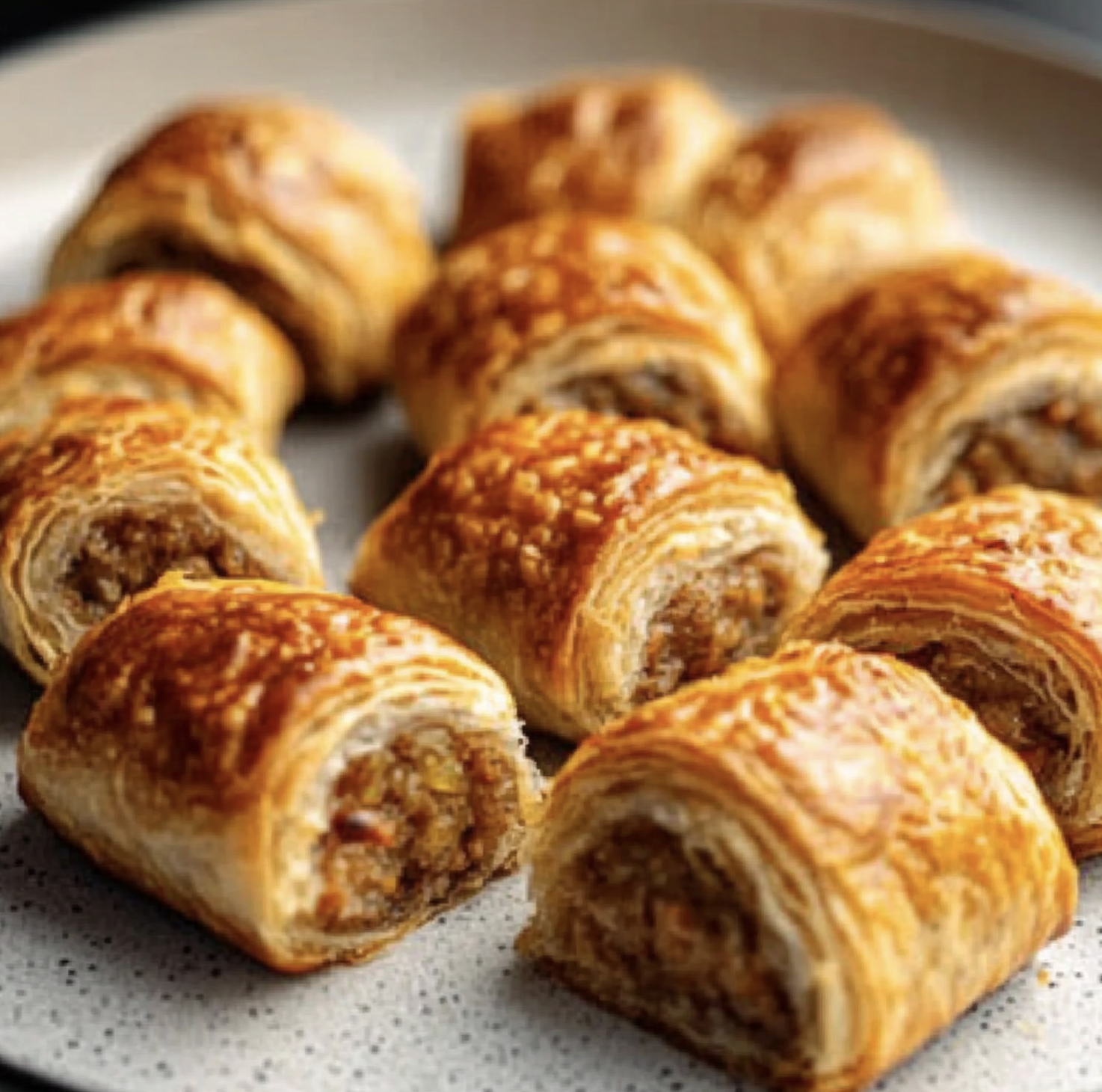 French Onion Sausage Rolls combine the rich, savory flavors of caramelized onions and seasoned sausage wrapped in golden puff pastry. A perfect appetizer or snack with a gourmet twist.