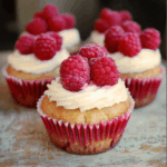 Pipe or spread frosting over cooled cupcakes and garnish with a fresh raspberry.