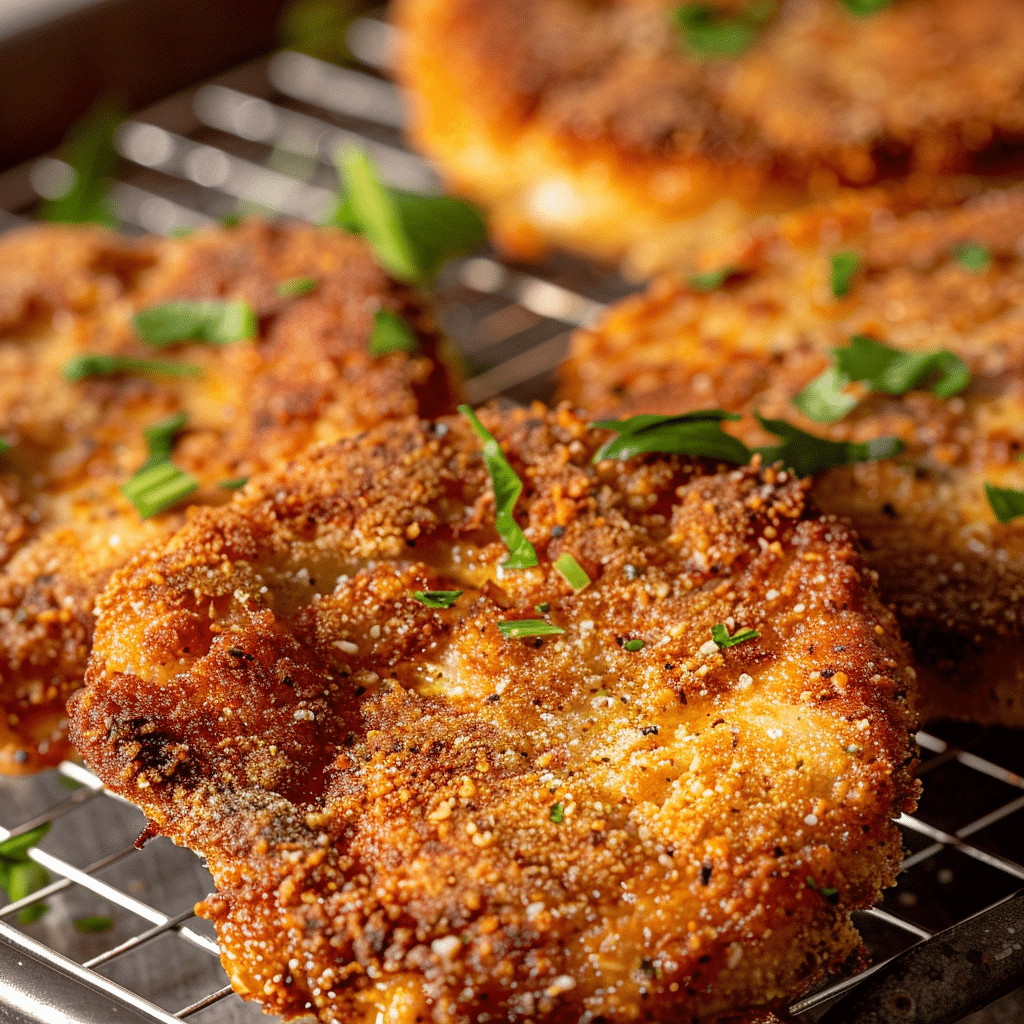 - While these Parmesan pork chops are best enjoyed fresh, you can make them ahead of time and reheat them with care to maintain their crispiness. After frying and baking the pork chops, allow them to cool completely before storing them in an airtight container in the refrigerator for up to 2 days. When ready to reheat, preheat your oven to 350°F (175°C) and place the pork chops on a baking sheet. Bake for 10-15 minutes until heated through, being careful not to overcook and dry them out. Reheating in the oven helps to retain their crispy coating and juicy texture.