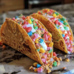 • Decorative Presentation: Serve these tacos on a colorful platter or individual dessert plates. You can garnish the plate with extra Fruity Pebbles or edible glitter for an even more festive look.