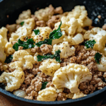 This Garlic Butter Ground Turkey with Cauliflower Skillet is a flavorful, low-carb meal that combines lean protein with tender cauliflower florets, all coated in a savory garlic butter sauce. It’s a quick and satisfying dish perfect for busy weeknights.