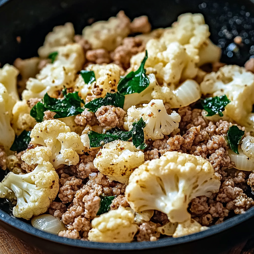 A healthy and flavorful one-pan meal made with ground turkey, cauliflower, and a savory garlic butter sauce. Perfect for a quick weeknight dinner.