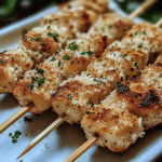 These Garlic Parmesan Chicken Skewers are flavorful, juicy, and perfect for grilling or baking. With a garlic-infused marinade and a crispy Parmesan coating, they’re an excellent choice for a quick dinner, BBQ, or appetizer.