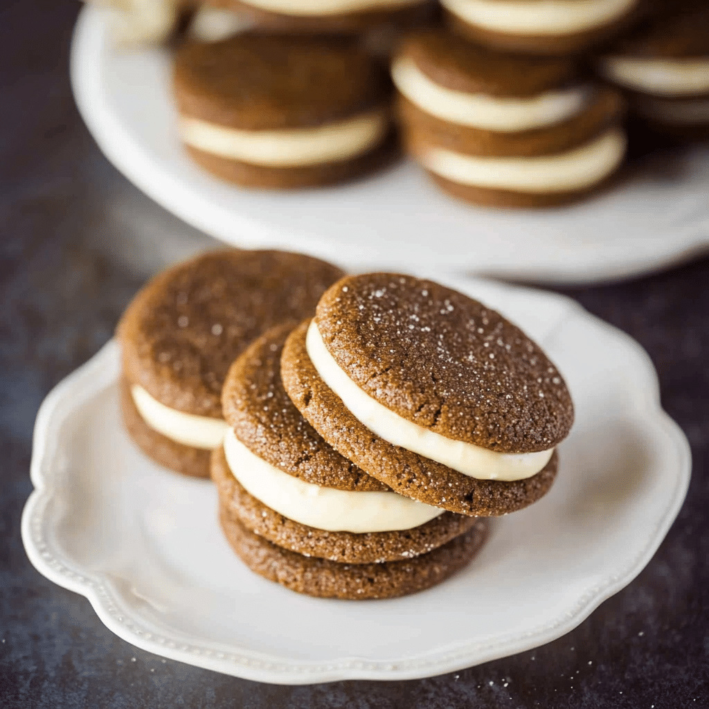 These Ginger Molasses Sandwich Cookies are soft, chewy, and perfectly spiced with ginger and molasses. Sandwiched together with a creamy eggnog frosting, they’re the ultimate holiday treat that combines warmth and sweetness in every bite.