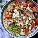 These Greek Chicken Orzo Power Bowls are a hearty, wholesome meal filled with juicy grilled chicken, tender orzo pasta, crisp veggies, tangy feta, and a zesty homemade lemon-herb dressing. They’re colorful, fresh, and perfect for lunch or dinner!