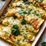 Green Chile Chicken Enchiladas are a deliciously savory dish with tender shredded chicken, creamy green chile sauce, and melted cheese, all wrapped in soft tortillas. This comforting meal is perfect for family dinners or gatherings and brings a mild yet flavorful heat.