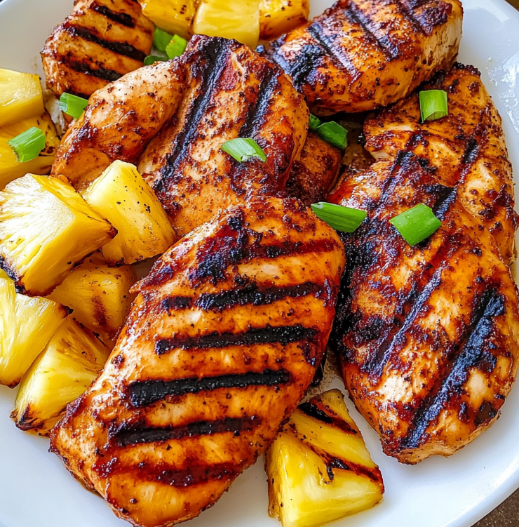 A tropical-inspired grilled chicken recipe marinated in a sweet and savory sauce, paired with juicy pineapple slices. Perfect for summer barbecues or a flavorful weeknight meal.