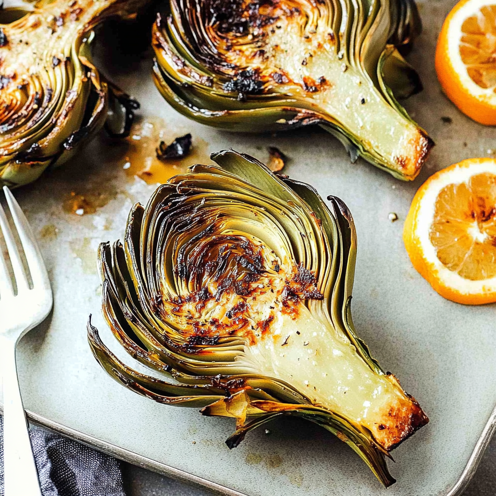 Tender and smoky grilled artichokes brushed with a garlic-lemon butter, perfect as an appetizer or a healthy side dish.