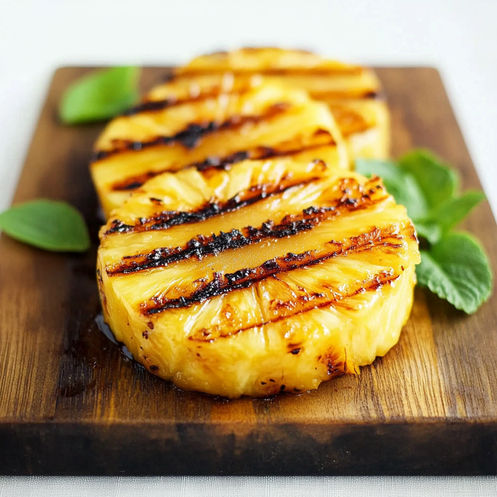 - Grill for 2–3 minutes per side, or until grill marks appear and pineapple is golden and tender.