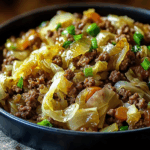 Ground Beef and Chopped Cabbage is a rustic, hearty dish made with simple ingredients that come together quickly for a flavorful, nourishing meal. This one-skillet recipe is a go-to for busy nights, delivering a delicious balance of tender cabbage and savory beef in every bite.