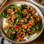 This ground turkey teriyaki stir fry is a quick, healthy, and delicious meal that’s perfect for busy weeknights. Lean ground turkey is cooked with fresh veggies and tossed in a sweet and savory teriyaki sauce. Serve it over rice or noodles for a satisfying dish packed with flavor!