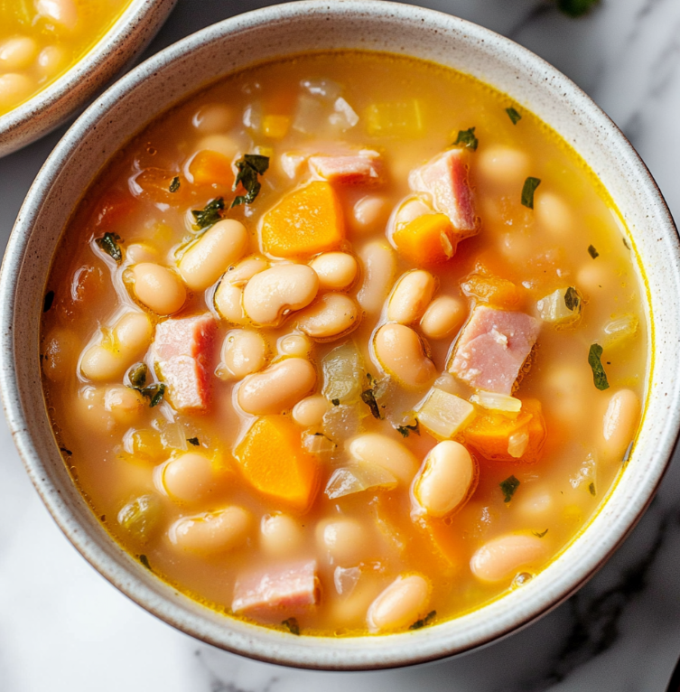 A hearty and comforting Ham and Bean Soup made with tender beans, smoky ham, and flavorful vegetables, perfect for a cozy meal.