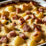 Ham and potato casserole is a creamy, cheesy, and comforting meal that’s easy to make and perfect for any occasion. Whether using leftover ham or making it from scratch, this hearty dish is sure to be a family favorite. Enjoy it fresh out of the oven or save some for later—it’s just as delicious the next day!
