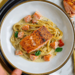 Healthy & Creamy Tuscan Salmon Pasta is a lightened-up version of a classic Italian dish, featuring tender salmon, sun-dried tomatoes, spinach, and a creamy yet nutritious sauce over whole wheat or gluten-free pasta.