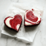 A romantic and indulgent Heart-Shaped Red Velvet Cheesecake, featuring a luscious red velvet base swirled with rich, creamy cheesecake, perfect for Valentine’s Day or special celebrations.
