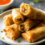 - Fry the egg rolls – Heat oil in a deep pan to 350°F (175°C). Fry egg rolls in batches until golden brown and crispy (about 3-4 minutes per side). Drain on paper towels.