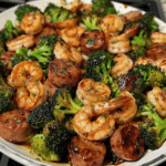 This Honey Garlic Shrimp, Sausage & Broccoli is a savory-sweet stir-fry packed with flavor! Juicy shrimp, smoky sausage, and crisp broccoli are tossed in a delicious honey garlic sauce. Perfect over rice or noodles, this dish is a quick and tasty weeknight meal.
