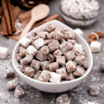 Muddy Buddies, also known as Puppy Chow, are a beloved snack made from Chex cereal, chocolate, peanut butter, and powdered sugar. This version adds the warm, comforting flavor of hot chocolate, making it even more indulgent. The combination of melted chocolate, cocoa powder, and marshmallow coating on crispy Chex cereal creates a treat that’s both crunchy and creamy, with a sweet, chocolaty coating that will satisfy any sweet tooth.