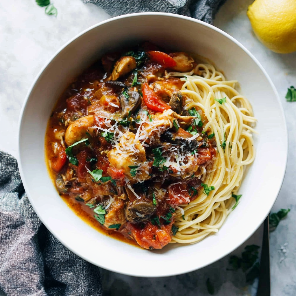 Savory and comforting, this Instant Pot Chicken Cacciatore features tender chicken thighs cooked in a robust tomato sauce with mushrooms, bell peppers, olives, and aromatic herbs—ready in under an hour with minimal effort.