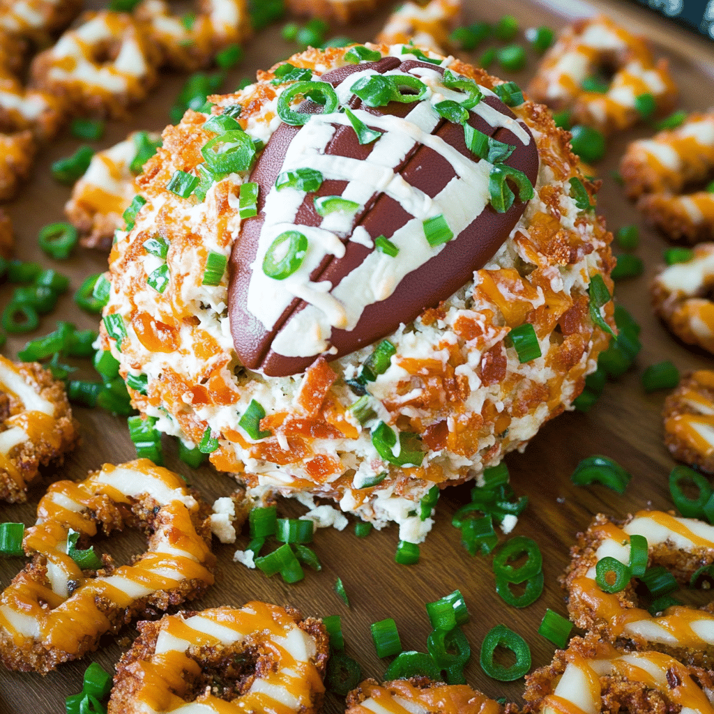 This Jalapeño Popper Football Cheese Ball is a fun and festive appetizer perfect for game day, tailgating, or any football-themed party! It combines the creamy, cheesy goodness of jalapeño poppers with the classic shape of a football. Topped with crispy bacon and decorated with cheese “laces,” this dip is sure to be the MVP of your snack table.