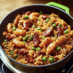 Jambalaya is a bold and flavorful one-pot dish from Louisiana, combining smoky sausage, juicy chicken, shrimp, and rice in a spicy Creole seasoning. This hearty meal is packed with vegetables and a rich tomato base, making it perfect for family dinners or meal prep!
