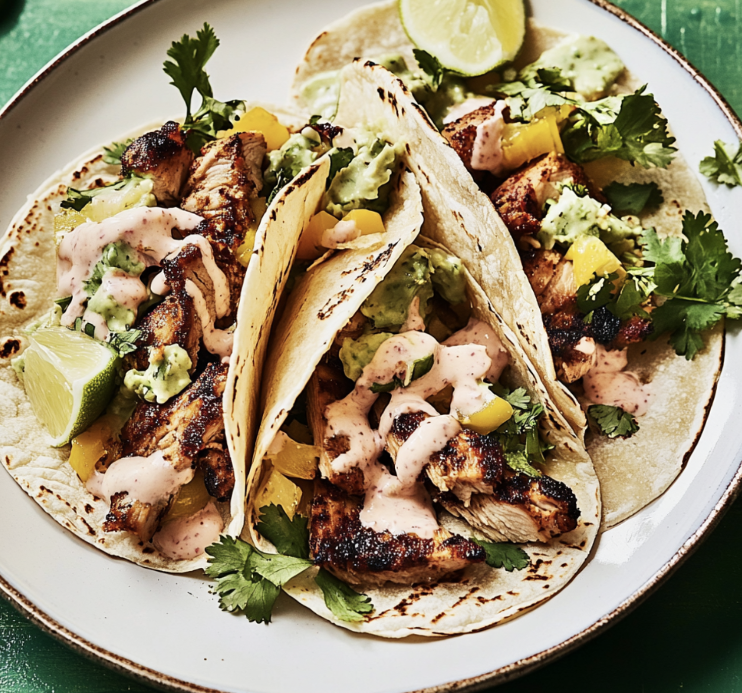 Jerk Chicken Tacos are a vibrant fusion of Caribbean flavors and Mexican street food. Tender, spicy jerk-marinated chicken is paired with fresh toppings and nestled in warm tortillas, creating a bold and satisfying meal.
